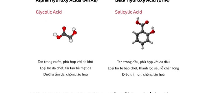Như ở bài viết trước về các phương pháp tẩy tế bào chết, mình đã liệt kê các chất tẩy tế bào chết Hóa học thường dùng để tẩy tế bào chết tại nhà trong routine dưỡng da hàng ngày là :