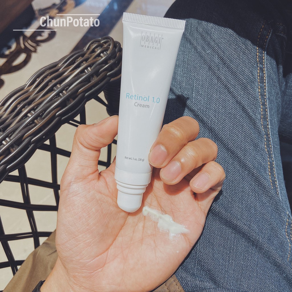Trong thời gian không dùng Tretinoin thì mình dùng Retinol để duy trì, thường Chun dùng Obagi Retinol 1.0 và sẽ bôi khoảng 3-4 bấm cho toàn bộ khuôn mặt
