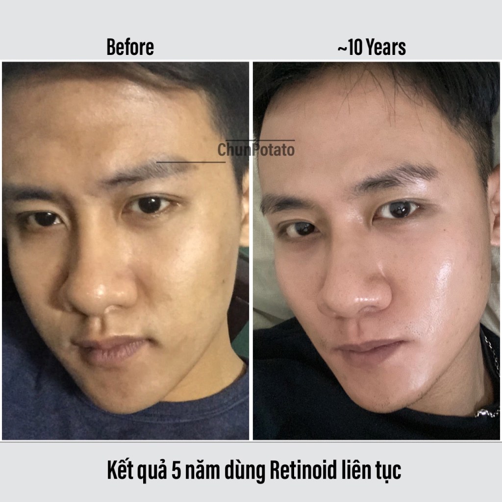 Dù sao thì mình cũng khá hài lòng với kết quả chăm sóc liên tục 5 năm với Retinol như Retinol hay Tretinoin (Chun chưa sử dụng Retinadehyte bao giờ), hiện tại trông da mình khá là ok thậm chí so với gần chục năm trước !
