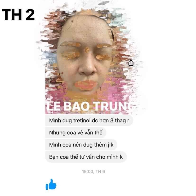 TH 2: 1 bạn bị mụn và tự ý sử dụng Tretinoin liên tục 3 tháng. Và nhìn da của bạn ấy xem có cải thiện gì không. Hết một tuýp Tre, 3 tháng cuộc đời, và một đống đồ linh tinh khác nữa mà chẳng đem lại kết quả gì.