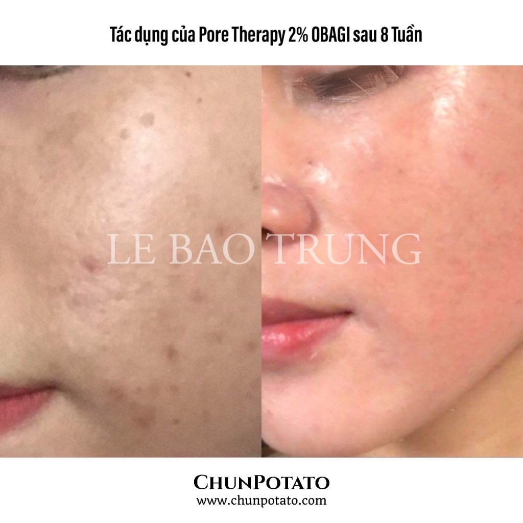 - Nếu bạn yêu làn da và yêu thích dưỡng da và tìm hiểu kỹ, ngoài Chun ra đôi khi mọi người sẽ khuyên chỉ nên dùng các sản phẩm chứa cồn và hương liệu một cách rất hạn chế để đạt được một mục đích cụ thể nào đó (trong thời gian ngắn) -> Chỉ nên dùng Pore Therapy 2% OBAGI theo đợt.